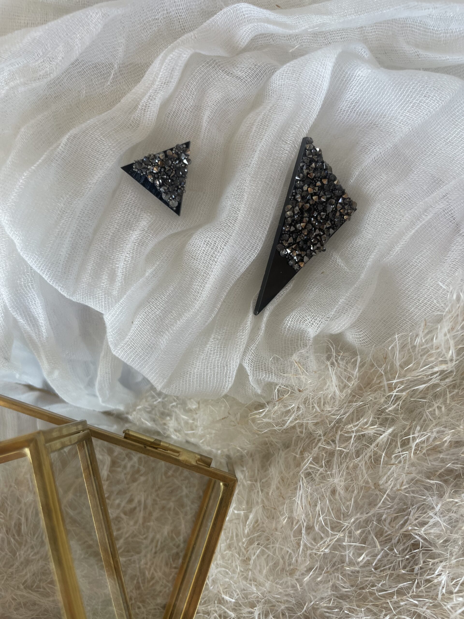 Predstavljamo unikatne črne uhane posute s sivimi bleščicami, ki združujejo prefinjenost in pridih glamurja.