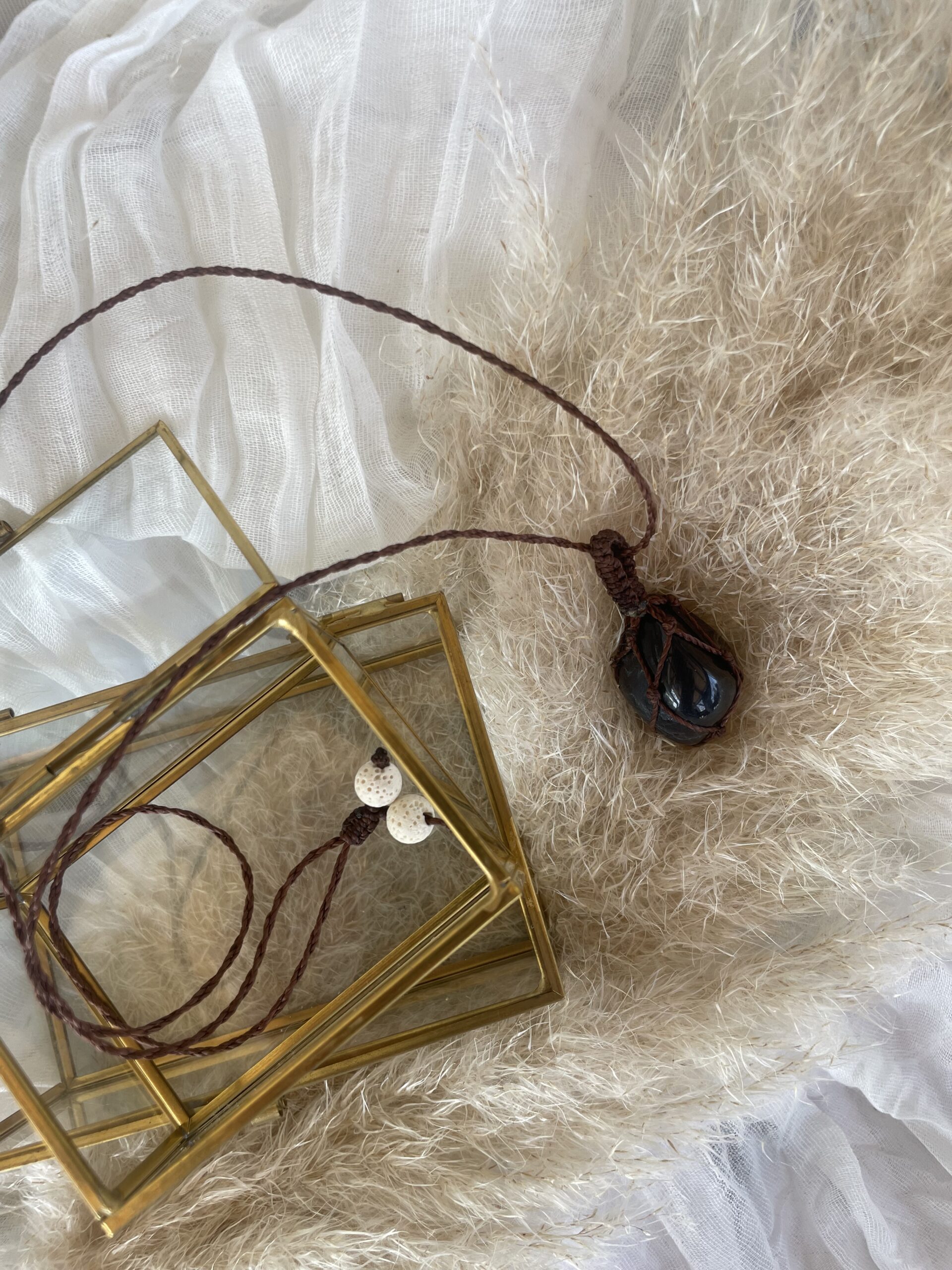 Dodajte svojemu videzu naraven in edinstven pridih z našo ročno pleteno makrame ogrlico, ki nosi čudovit mineral – vsak kos je unikaten! 💎
